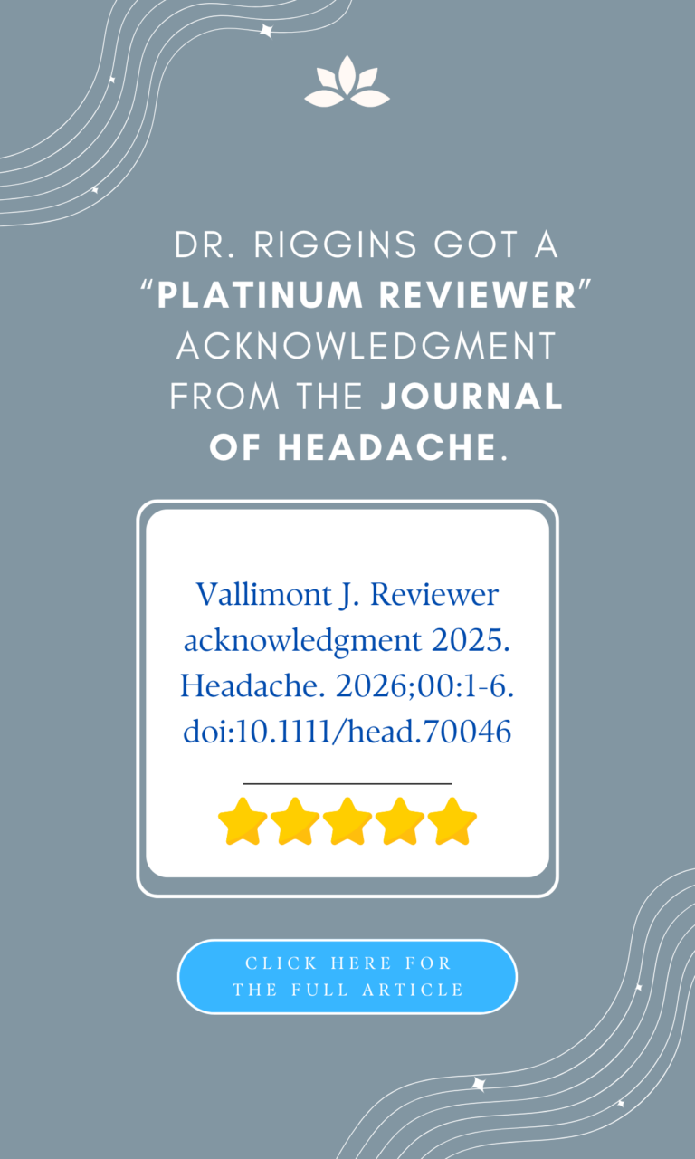 Dr. Riggins is Recognized as the Gold Reviewer of the Journal of American Headache Society, December 8, 2022.